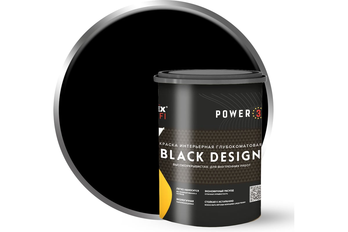 Краска интерьерная глубокоматовая высокоукрывистая черная BlackDesign (0.9 л /1.13кг) FARBITEX PROFI