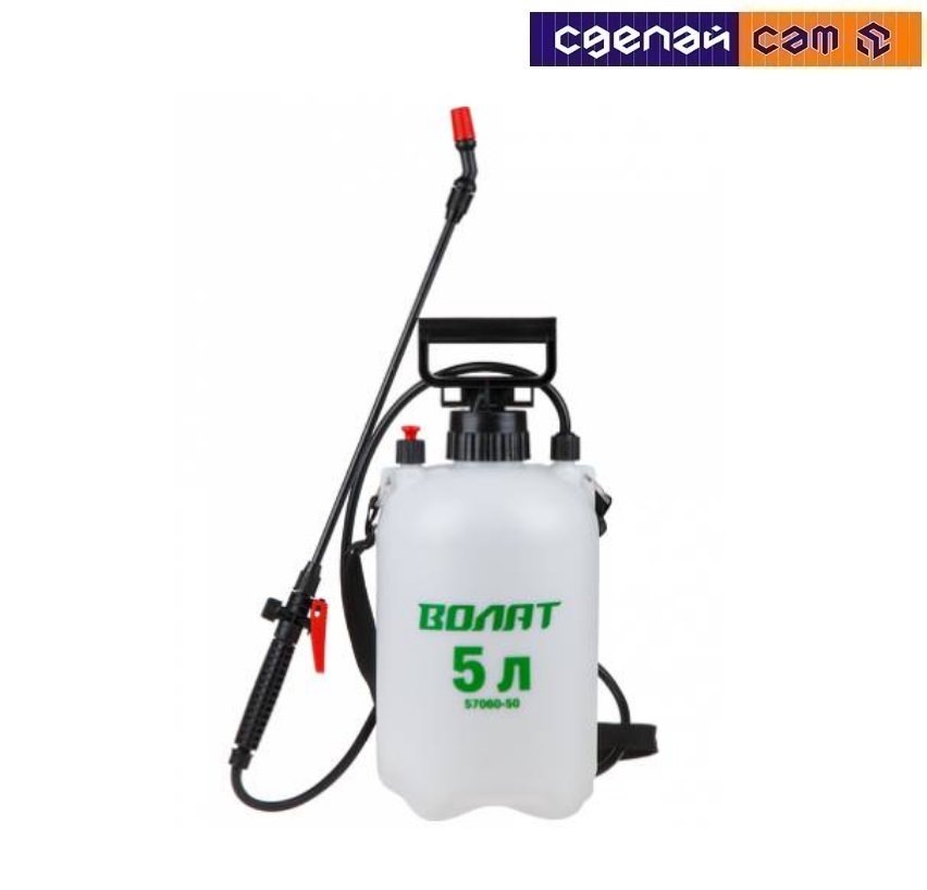 Опрыскиватель ранцевый 5 л ВОЛАТ (57060-50) предназначен для обработки растений средствами защиты, гербицидами и жидкими удобрениями.