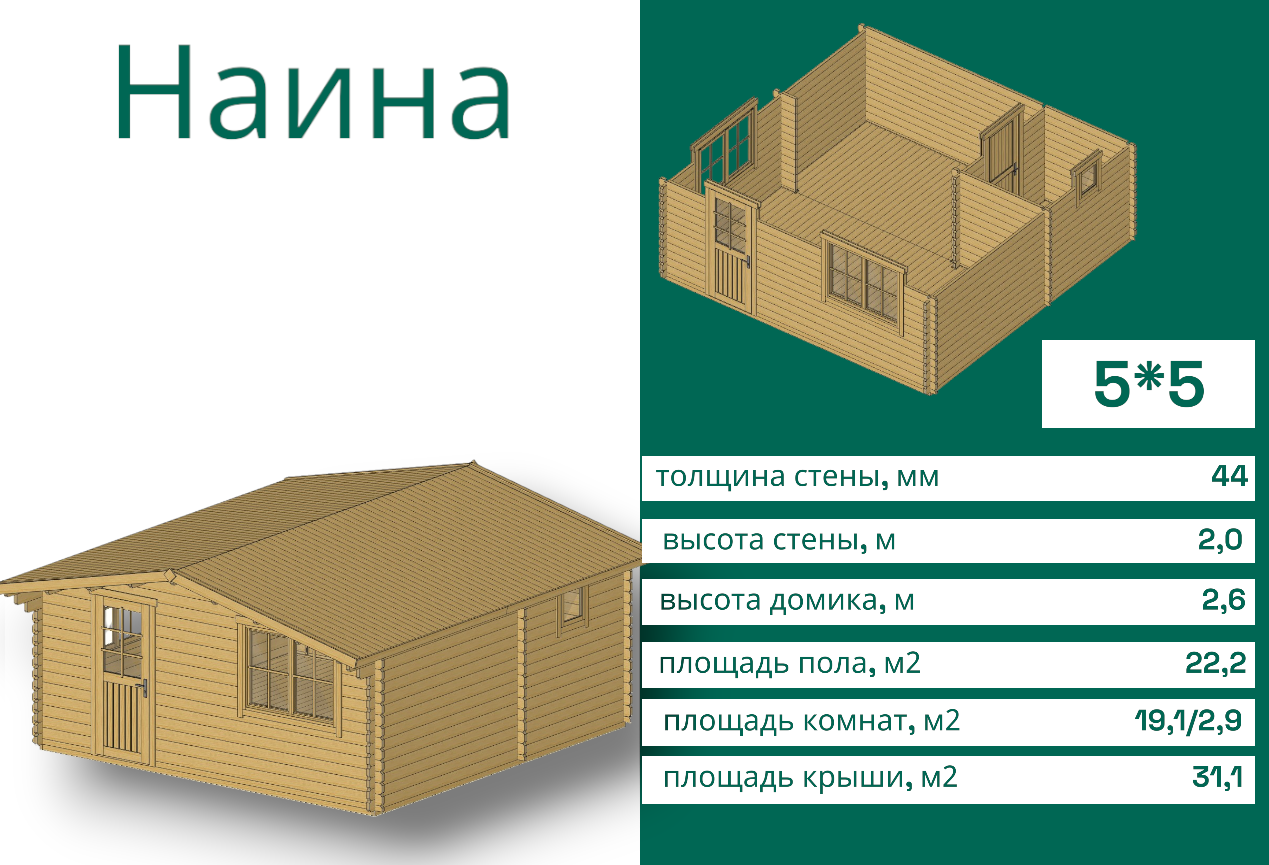 Садовый домик Наина 5х5 толщина 44 мм (готовая комплектация)