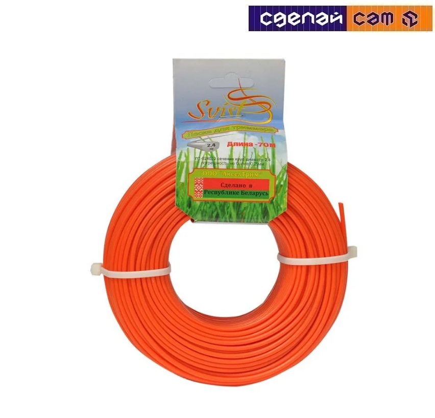 Леска для триммера сечение квадрат диаметр 2,4 бобина 70 м
