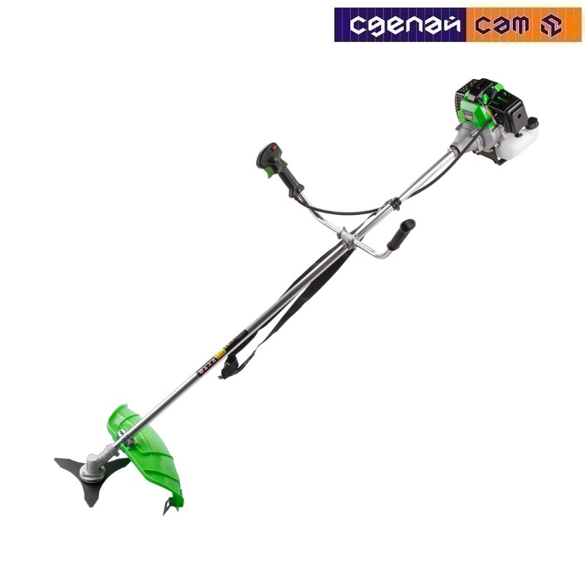 Максимальная частота вращения: 9000–10000 об/мин.Леска: d 2,4 мм / 2,5 м.Нож: 1,4x255 мм.Диаметр рабочей зоны: нож 255 мм, леска 430 мм. Допустимый уровень шума: 114 ± 3 дБА. Топливная смесь: 1:25 (масло : топливо АИ-92). Редуктор, крепление ручки и сцепление не установлены на штангу, необходимо установить все части самостоятельно.