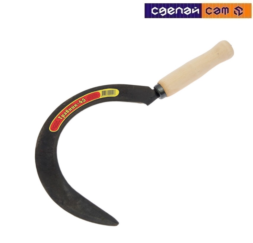 Серп «Травник-45» с заточенной режущей кромкой. Величина захвата: 21 см. Общая длина: 34,5 см. Вес товара: 0.26 кг. Ручное сельскохозяйственное орудие, жатвенный нож.