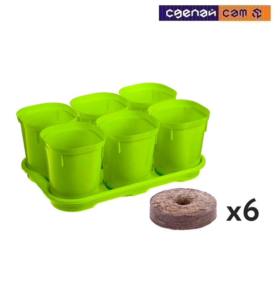 Набор горшков для рассады InGreen Smart Solution с поддоном и торфяными таблетками 6x400мл
