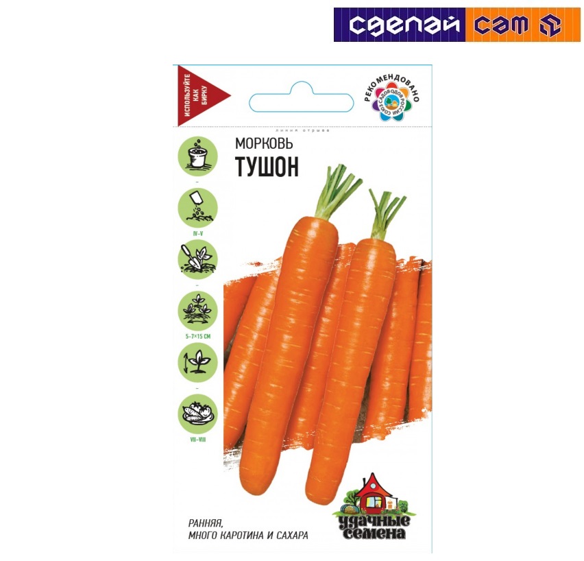 Раннеспелый (период от всходов до уборки урожая 80-90 дней) популярный сорт с выровненными товарными корнеплодами.Розетка листьев полураскидистая. Корнеплоды оранжевые, цилиндрические, с тупым кончиком (сортотип Нантская), длиной 18-20 см, массой 100-170 г.Поверхность гладкая с мелкими глазками. Мякоть вкусная, сочная, с высоким содержанием каротина. Выращивают прямым посевом в открытый грунт в конце апреля-начале мая на глубину 1 см, расстояние между рядками 15 см.Подросшие всходы прореживают, оставляя между растениями по 5-7 см. Рекомендуется для получения ранней пучковой продукции. Урожайность 6,0-6,5 кг/м2.