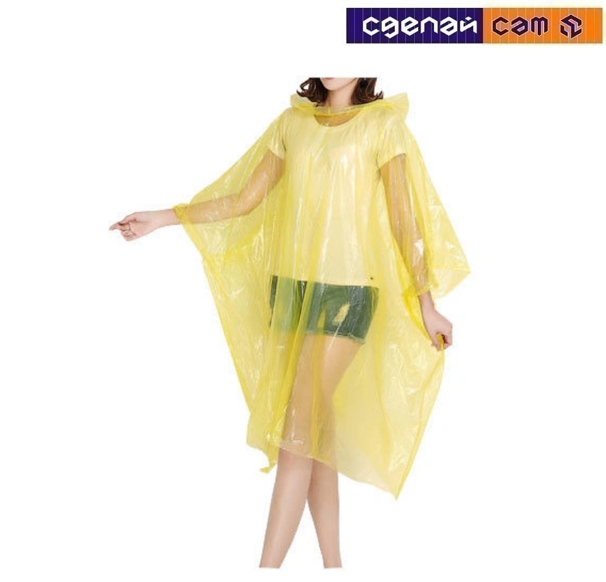 Размер: 100х127 см. Компактный, легко складывается. Удобно взять с собой и надеть в нужный момент.