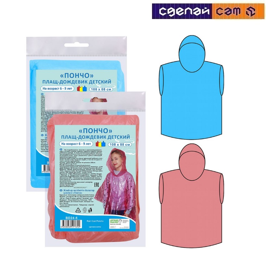 Полюбившийся многим плащ-дождевик надежно защитит вашего ребенка от дождя и ветра. К числу несомненных достоинств дождевика можно отнести его компактность, он без труда разместится даже в небольшой сумочке или рюкзачке.
