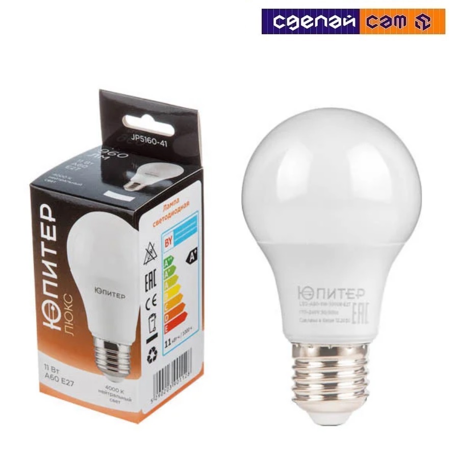 Лампа светодиодная A60 СТАНДАРТ 9 Вт 170-240В E27 4000К ЮПИТЕР ЛЮКС