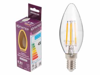 ЛАМПА СВЕТОДИОДНАЯ C37 СВЕЧА 6 ВТ 220-240В E14 4000К ЮПИТЕР ДЕКОР