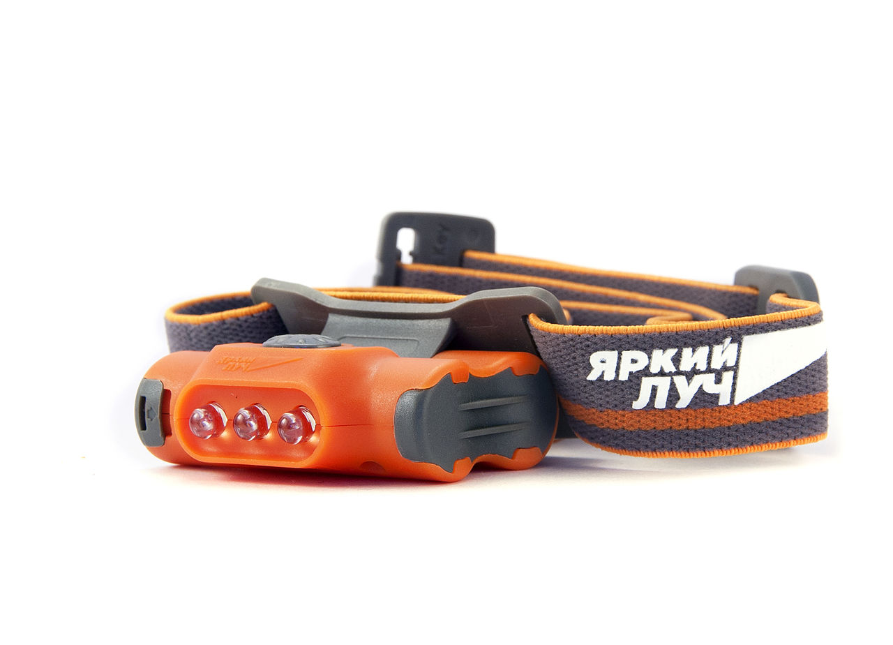 Фонарь ЯРКИЙ ЛУЧ LH-030 "DROID" оранжевый налобный, 3 режима (5/30лм, SOS), IPX4, на 2xAAA