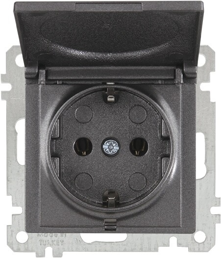 Rita - Розетка 2P+E, с крышкой, защ. шторки, дымчатый 2200-611-0295