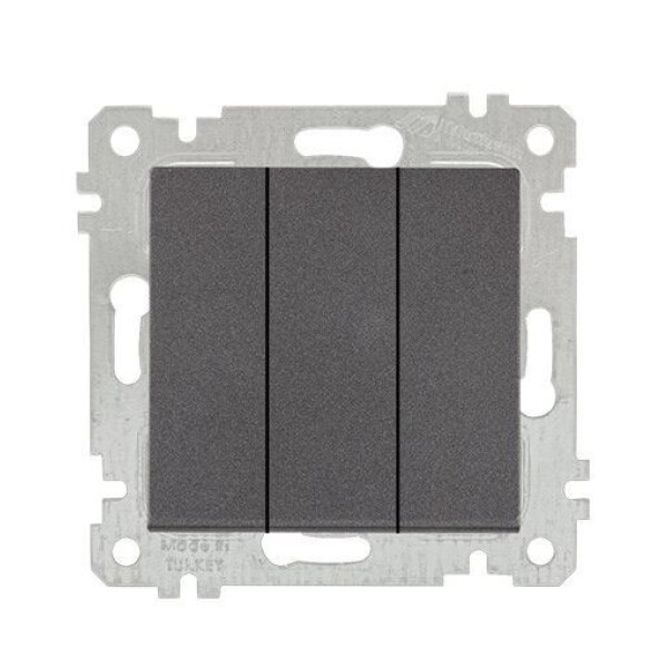 Rita - Выключатель трехклавишный, пруж. зажимы, дымчатый 2200-409-0195