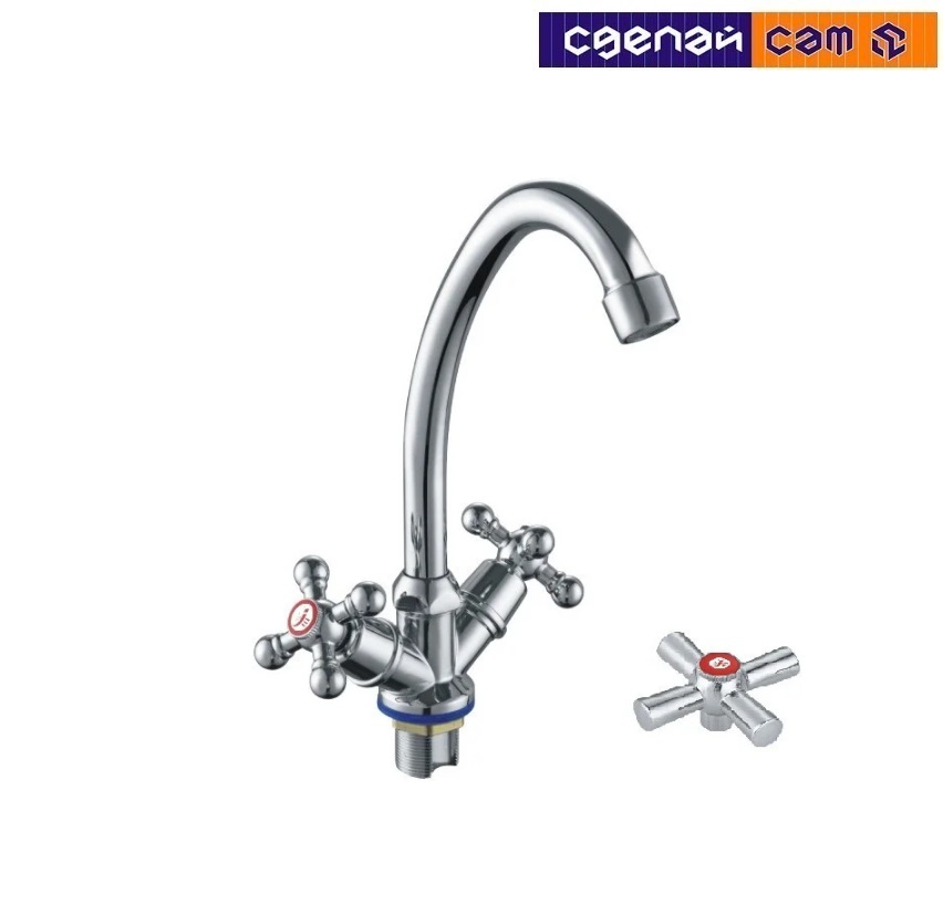 Смеситель для умывальника/мойки с мет. маховиками TD2182