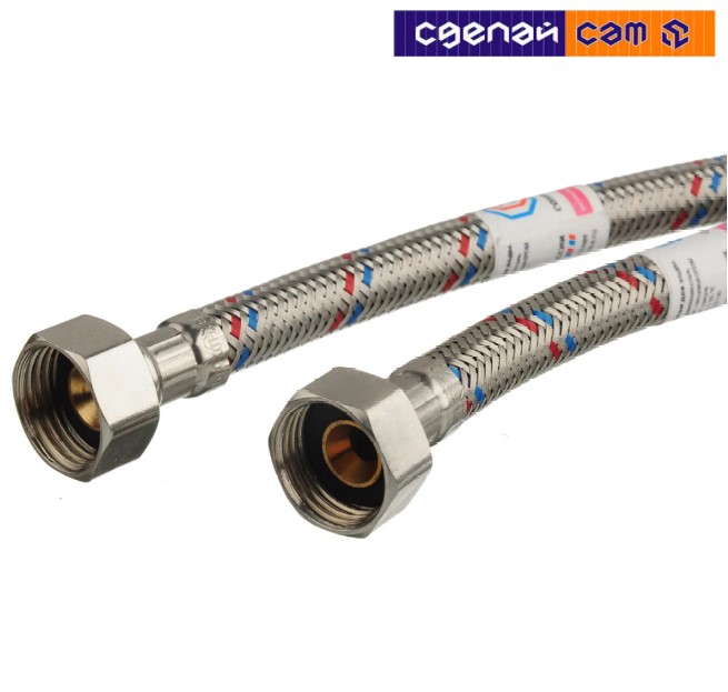 Гибкая подводка – это резиновый шланг в металлической оплетке, оборудованный с обеих сторон коннекторами.