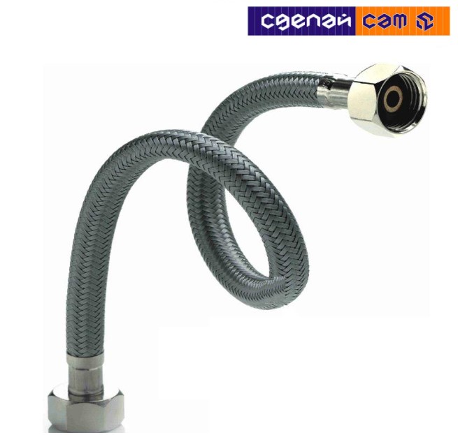 Гибкая подводка – это резиновый шланг в металлической оплетке, оборудованный с обеих сторон коннекторами.
