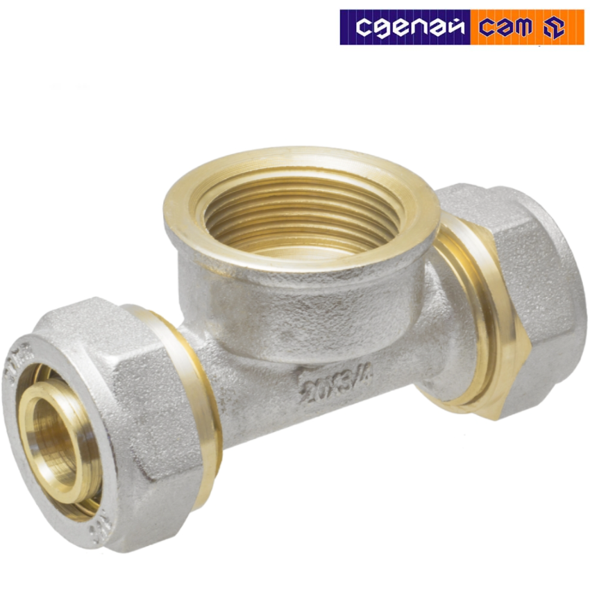 Тройник обжимной с переходом на внутреннюю резьбу. латунь. 16х1/2"Fх16 (PFPF450PFPF450)