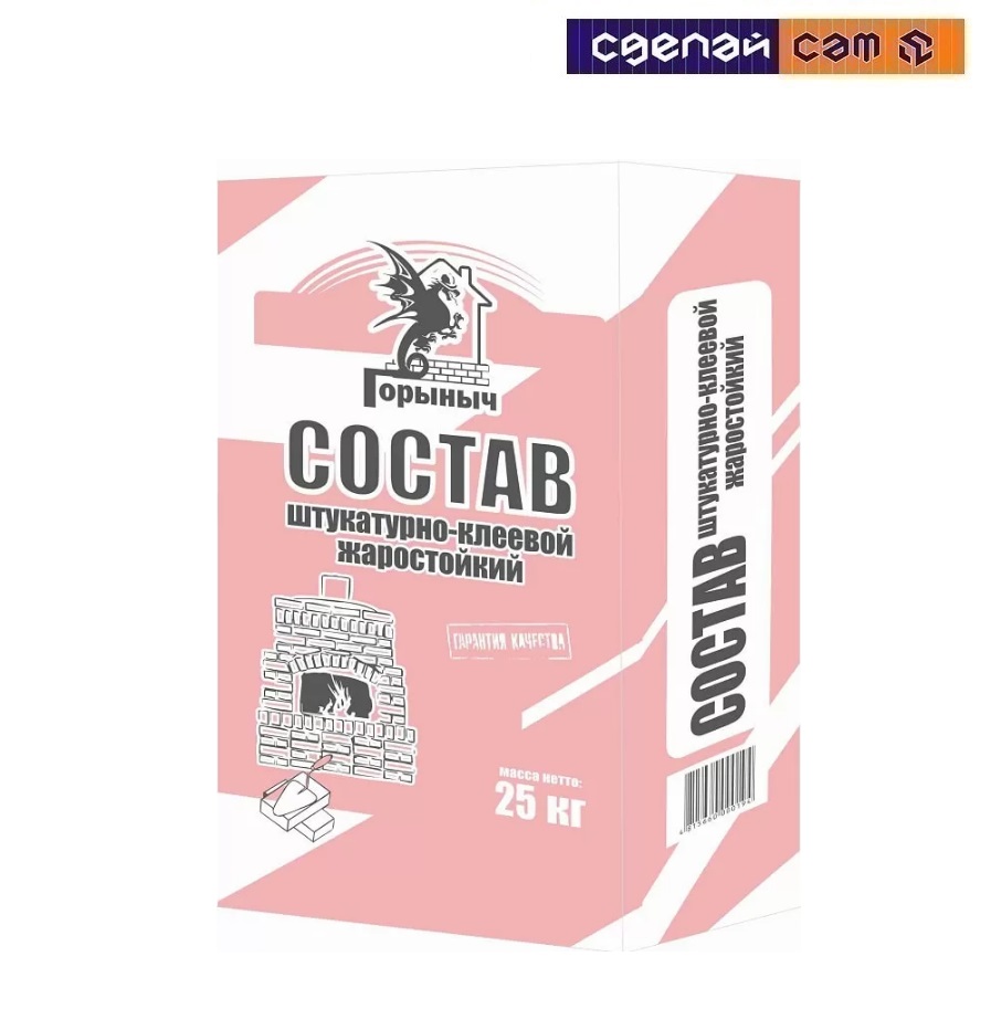 Штукатурно-клеевой жаростойкий состав Горыныч применяется для облицовки печей и каминов, монтажа полов с подогревом, оштукатуривания стен печей из керамического, шамотного кирпича и других огнеупорных материалов. Стойкий к воздействию влаги и повышенных температур до +300°С. Рекомендуемая толщина слоя до 10 мм.