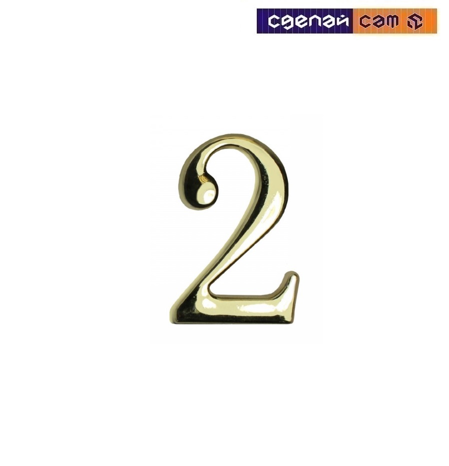 Цифра дверная АЛЛЮР "2" на клеевойоснове золото (600, 20)