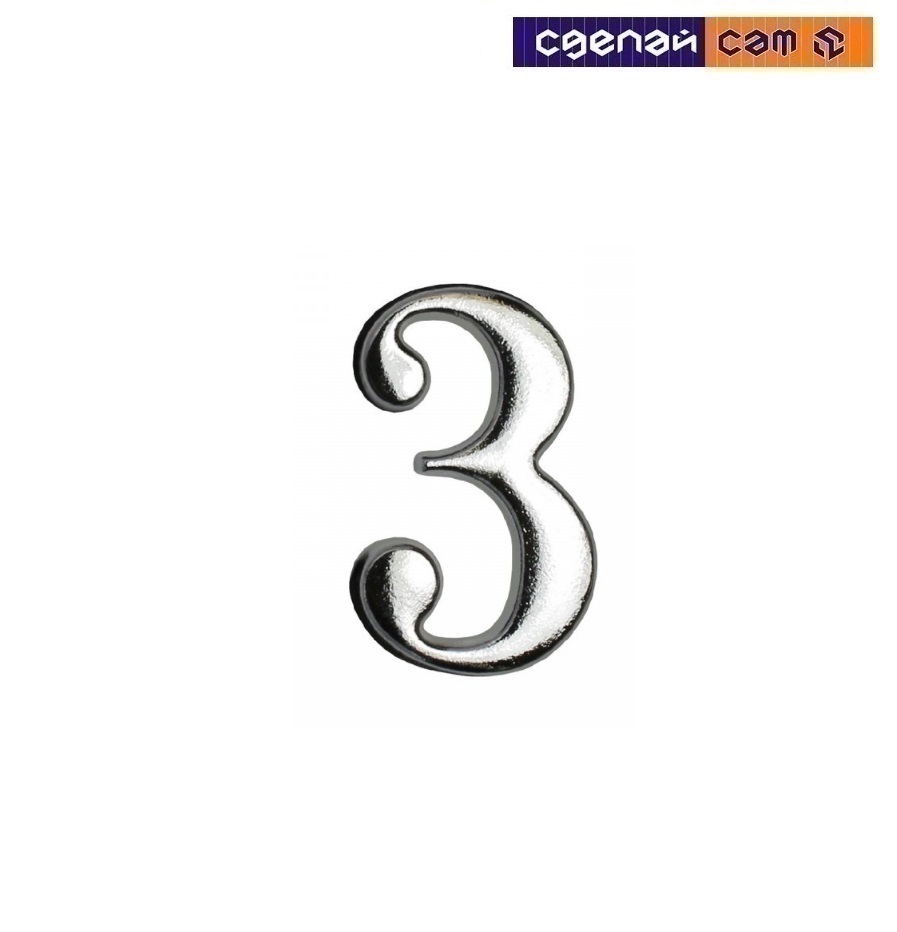 Цифра дверная АЛЛЮР "3" на клеевойоснове хром (600, 20)