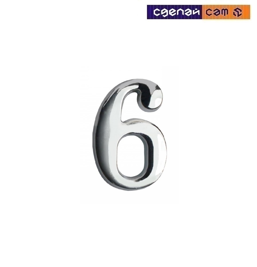 Цифра дверная АЛЛЮР "6" на клеевойоснове хром (600, 20)