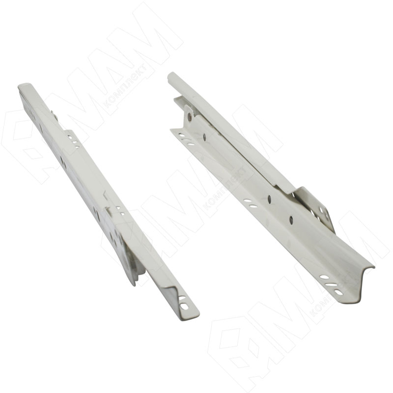Направляющие изготавливаются из металлических планок, движущим элементом здесь выступает пластиковый ролик, благодаря которому осуществляется свободное движение даже тяжелых полок. Монтируются направляющие для ящиков очень легко, следует лишь правильно подобрать крепежные элементы.