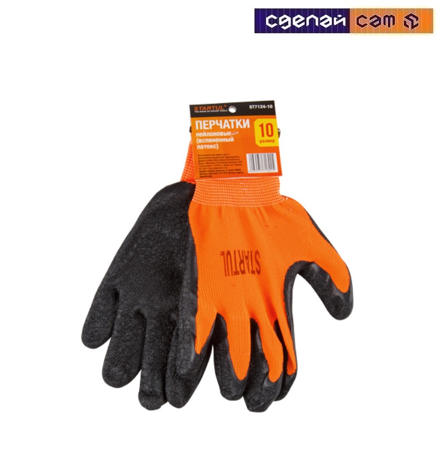 Перчатки нейлон, латексное рельефное покрытие, 10 р-р STARTUL