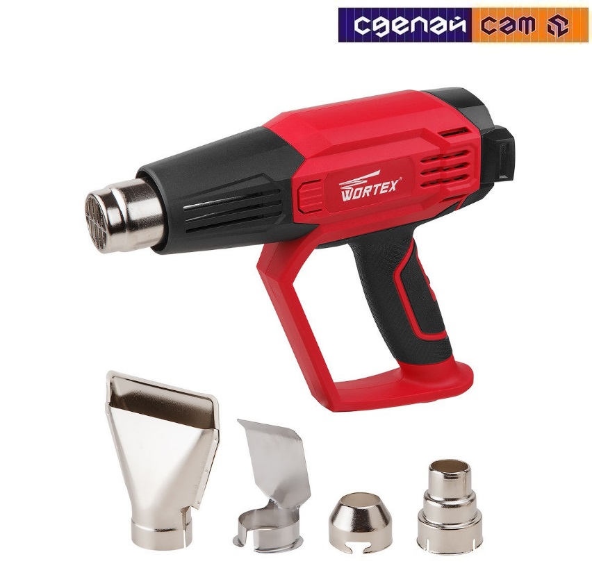 Термовоздуходувка WORTEX HG 6020-1 в чем. + набор сопл 2000 Вт, 2 скор., 350-600 °С, арт.0334327