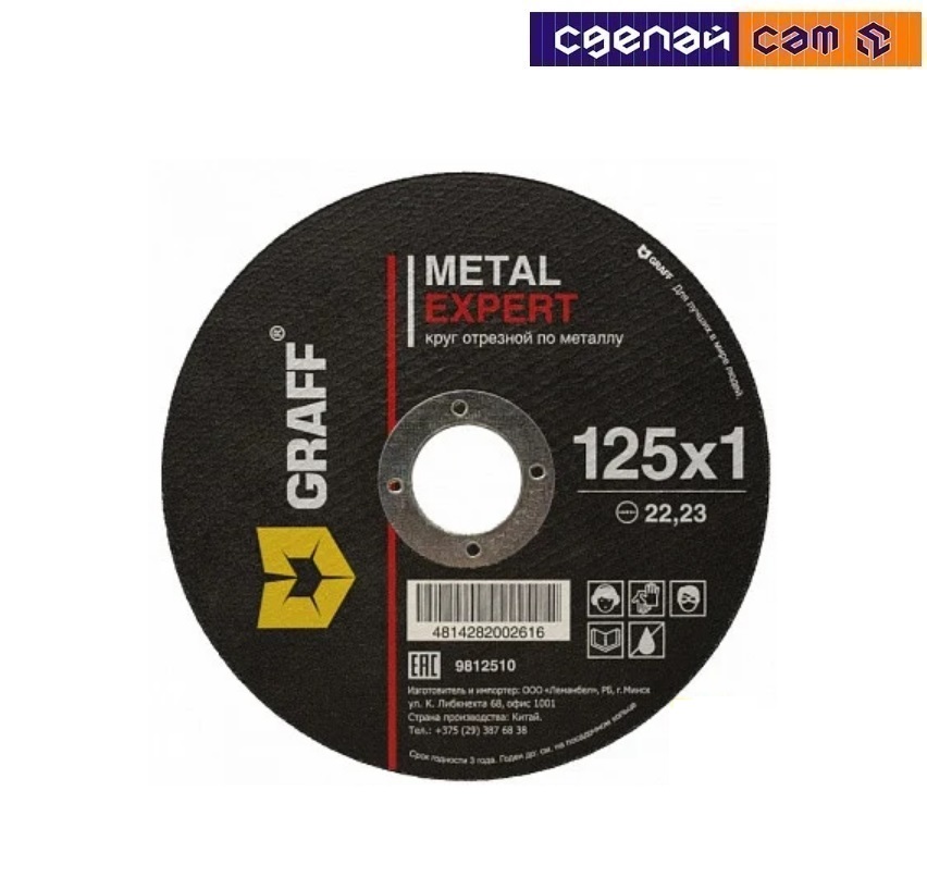 Профессиональный отрезной круг (диск) по металлу GRAFF 125x1,0x22,23 мм серии "Expert" для тяжелых рабочих условий.