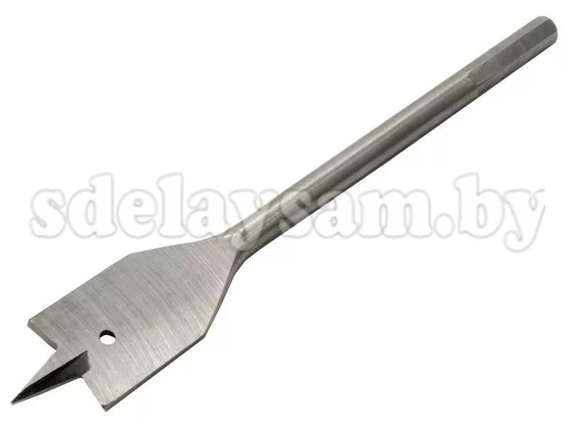 Перьевые (перовые) сверла по дереву с шестигранным хвостовиком. Предназначены для сверления европейских сортов твердой древесины, мягкого дерева, древесно-стружечных плит без покрытия, гипсокартона, пластика. Сверло изготовлено из закаленной хромистой стали. Острый наконечник сверла позволяет работать без дополнительного центрирования. Для исключения проворачивания сверла в патроне дрели все они имеют шестигранный хвостовик