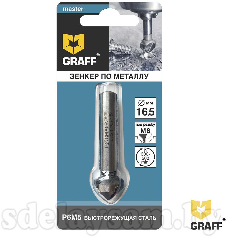 Параметры зенкера по металлу диаметром 16,5 мм: диаметр - 16,5 мм; размер резьбы - М8; общая длина - 60 мм; диаметр хвостовика - 10 мм.