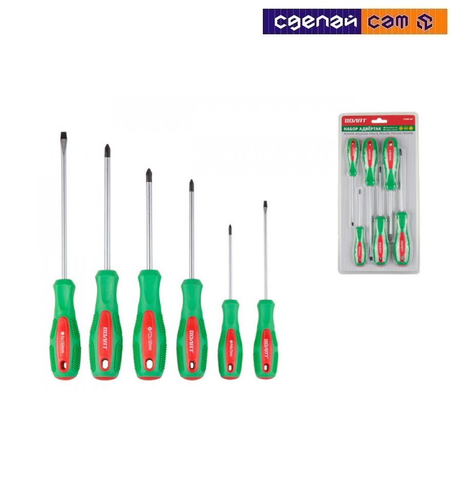 Набор отверток 4шт (SL4х75,SL5х100,PH1х75,PH2х100) ВОЛАТ (17085-04)