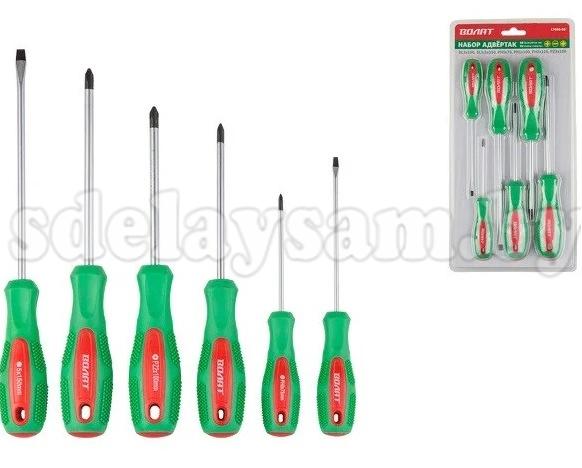 Набор отверток 6шт (SL3х100,5,5х150 PZ2х100 PH0х75,1х100,2х125) ВОЛАТ