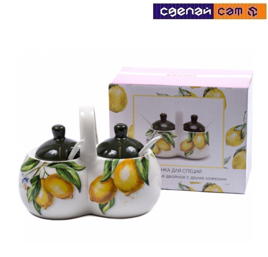 Банк для специй керамическая "Лимоны" 250 мл двойная с 2мя ложками