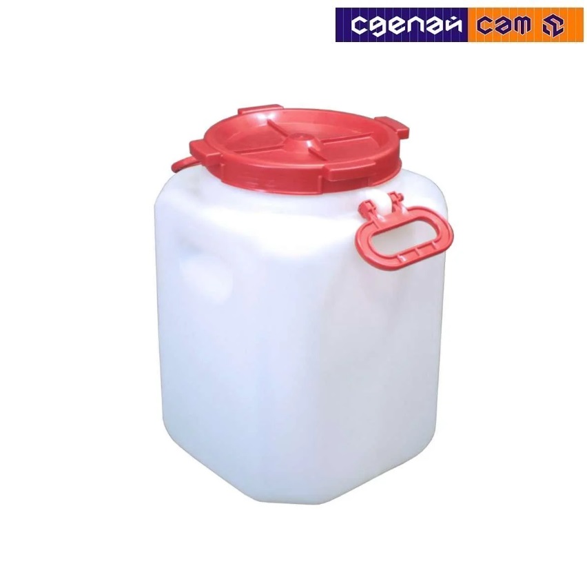 Конструкция горловины обеспечивает полный слив жидкости и доступ руки для мытья бочки изнутри. На дне имеется углубление для удобного захвата канистры-бочки при сливе содержимого.