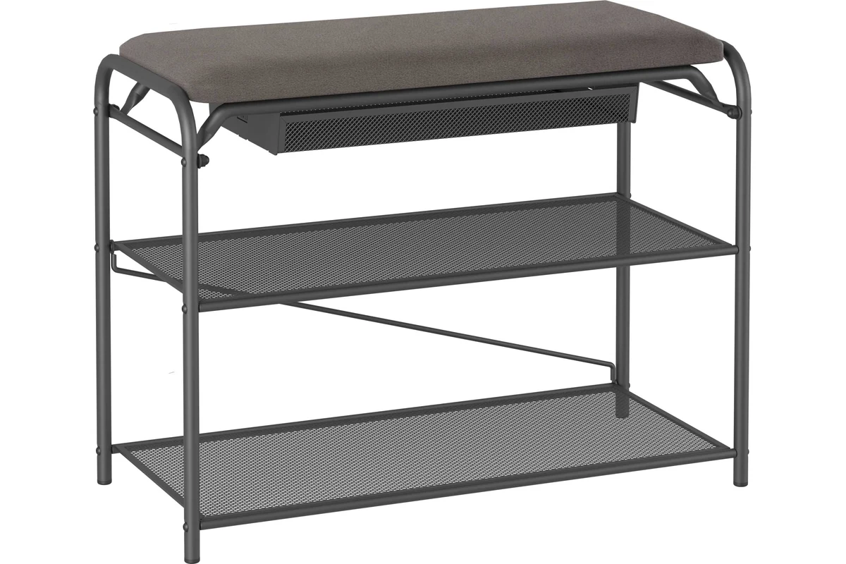 Подставка для обуви "Гранада 23В_НБК" с сиденьем и ящиком, ткань нубук (Графит)