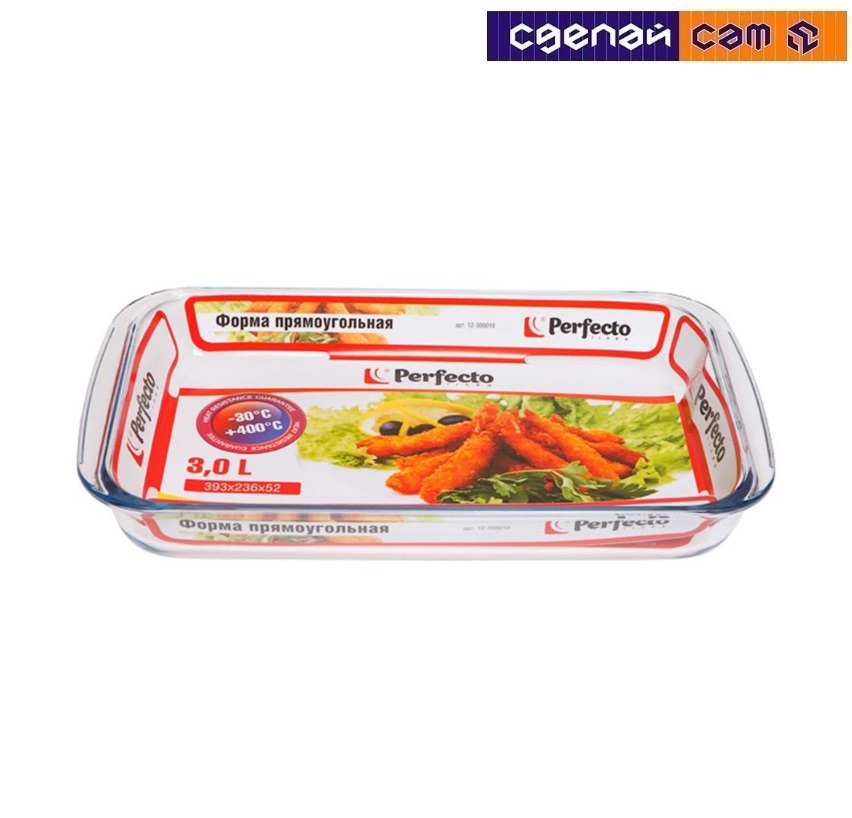 Форма из жаропрочного стекла 3.0 л прямоугольная 394x237x50 мм PERFECTO LINEA