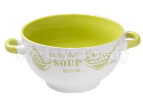 Супница керамическая 140 мм серия Окрошка бело-зеленая PERFECTO LINEA