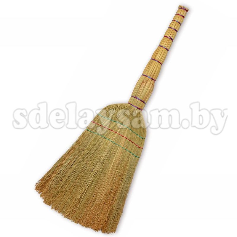 Веник собирается из веток сорго. Специальная форма веников позволяет легко сметать мусор и мелкую пыль. Подходит для использования, как в помещении так и на улице. Рукоять и рабочая часть веника прошита тонкой полипропиленовой нитью.
